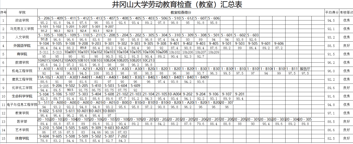 特殊说明:因为检查当天部分工作人员请假导致部分学院只有五名以下的检查人员检查,还有部分学院分配的教室存在上课或被借用的特殊情况无法检查。